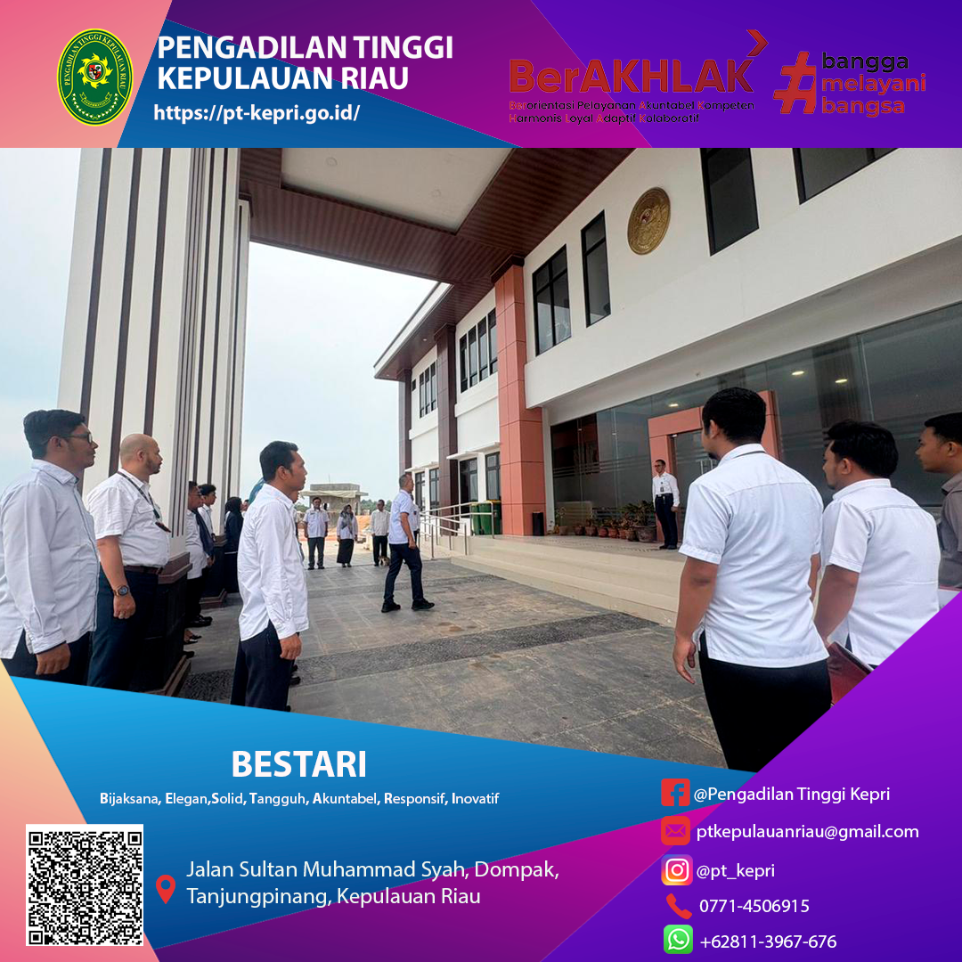 Keluarga besar Pengadilan Tinggi Kepulauan Riau melaksanakan apel pagi di gedung baru yang berlokasi di Dompak, Tanjungpinang. Apel dihadiri oleh Ketua Pengadilan Tinggi Kepulauan Riau dan diikuti oleh para Hakim Tinggi, Panitera, Sekretaris, pejabat struktural dan fungsional, serta seluruh aparatur Pengadilan Tinggi Kepulauan Riau. Kegiatan apel pagi ini berlangsung dengan tertib dan khidmat sebagai bentuk disiplin serta semangat kebersamaan seluruh aparatur dalam mendukung pelaksanaan tugas dan pelayanan peradilan di lingkungan Pengadilan Tinggi Kepulauan Riau.