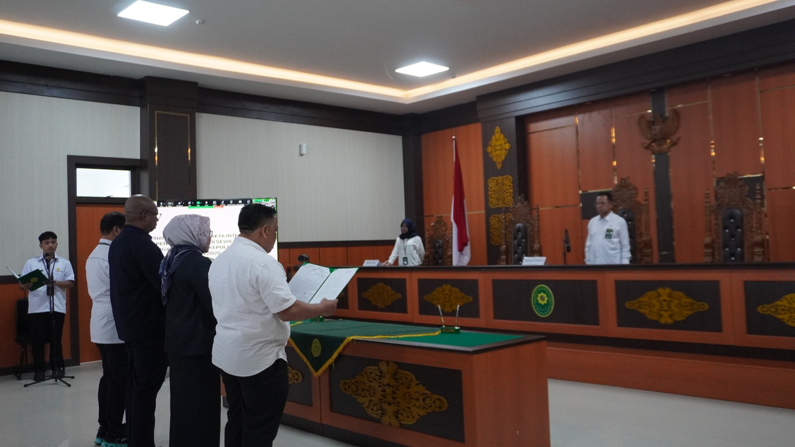 Pengadilan Tinggi Kepulauan Riau menyelenggarakan Penandatanganan Pakta Integritas Ketua Pengadilan Negeri se-Wilayah Hukum Pengadilan Tinggi Kepulauan Riau yang dirangkaikan dengan Pembinaan/Sosialisasi ASN BerAKHLAK dan 7 Nilai Utama Mahkamah Agung pada Senin, 12 Januari 2026, bertempat di Ruang Sidang Utama Pengadilan Tinggi Kepulauan Riau.