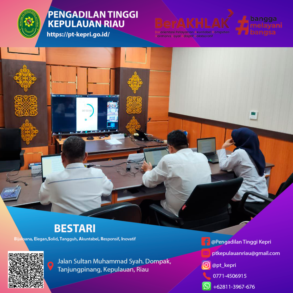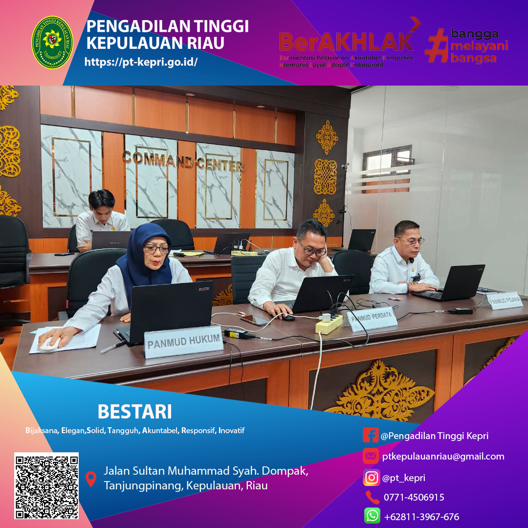 Pada hari Senin, 20 Oktober 2025 Panitera Muda Hukum, Panitera Muda Pidana dan Panitera Muda Perdata Pengadilan Tinggi Kepulauan Riau mengikuti Uji Substansi yang diselenggarakan secara daring melalui Zoom Meeting dilaksanakan di Ruang Command Center Pengadilan Tinggi Kepulauan Riau. Kegiatan Uji Substansi ini bertujuan untuk mengukur serta meningkatkan kompetensi teknis kepaniteraan, sehingga mampu mendukung peningkatan kualitas layanan peradilan dan profesionalisme aparatur di lingkungan peradilan umum.