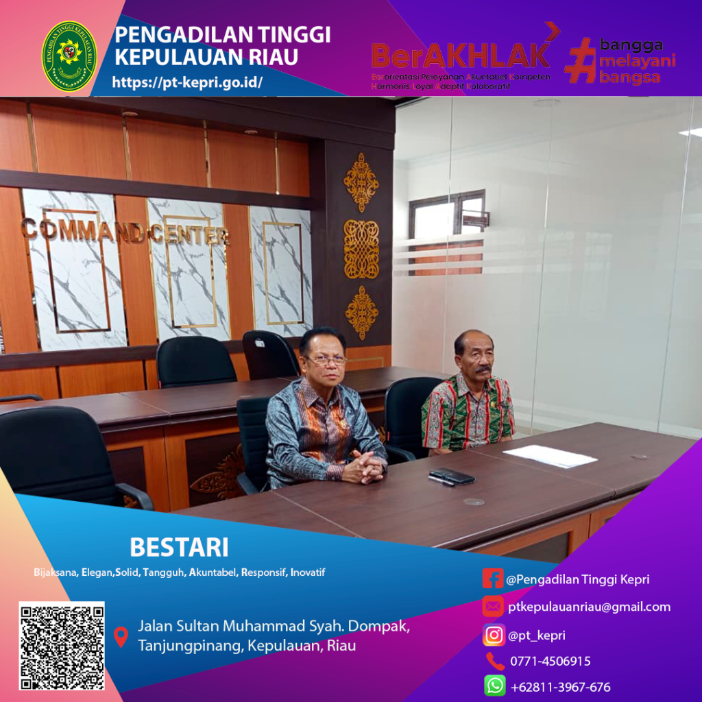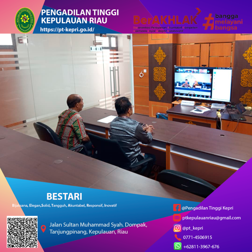 Pengadilan Tinggi Kepulauan Riau pada Jum’at, 17 Oktober 2025 mengikuti Zoom Dialog Yudisial “Towards Arrasment-Free Judiciary” yang diselenggarakan oleh IKAHI, BPHPI dan American Council for International Education. Zoom Meeting ini berlangsung di Ruang Command Center Pengadilan Tinggi Kepulauan Riau dan dihadiri oleh YM Ketua Pengadilan Tinggi Kepulauan Riau dan Hakim Tinggi. Dialog ini bertujuan memperkuat pemahaman serta komitmen lembaga peradilan dalam mewujudkan lingkungan peradilan yang bebas dari segala bentuk pelecehan, sekaligus menjadi ruang diskusi untuk memperkuat integritas dan profesionalisme aparatur peradilan di Indonesia.