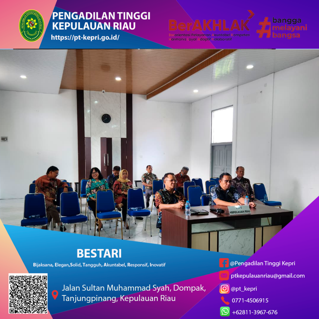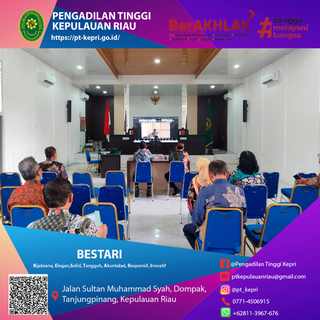 Pengadilan Tinggi Kepulauan Riau mengikuti kegiatan Zoom Kuliah Umum dan Dialog Yudisial dengan tema “Keadilan Iklim dan Litigasi Lingkungan: Tantangan bagi Peradilan”. Kegiatan ini dihadiri oleh YM Ketua Pengadilan Tinggi dan YM Hakim Tinggi Pengadilan Tinggi Kepulauan Riau beserta aparatur peradilan lainnya sebagai bentuk komitmen dalam meningkatkan pemahaman terhadap isu-isu lingkungan hidup yang menjadi tantangan global saat ini. Melalui kegiatan ini, diharapkan para aparatur peradilan dapat memperkuat kapasitas, kepekaan, serta tanggung jawab dalam menangani perkara lingkungan, guna mewujudkan keadilan yang berkelanjutan dan berpihak pada pelestarian lingkungan hidup.