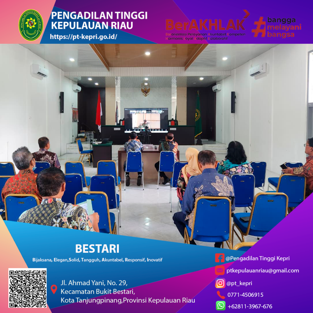 Pengadilan Tinggi Kepulauan Riau mengikuti kegiatan Zoom Kuliah Umum dan Dialog Yudisial dengan tema “Keadilan Iklim dan Litigasi Lingkungan: Tantangan bagi Peradilan”. Kegiatan ini dihadiri oleh YM Ketua Pengadilan Tinggi dan YM Hakim Tinggi Pengadilan Tinggi Kepulauan Riau beserta aparatur peradilan lainnya sebagai bentuk komitmen dalam meningkatkan pemahaman terhadap isu-isu lingkungan hidup yang menjadi tantangan global saat ini. Melalui kegiatan ini, diharapkan para aparatur peradilan dapat memperkuat kapasitas, kepekaan, serta tanggung jawab dalam menangani perkara lingkungan, guna mewujudkan keadilan yang berkelanjutan dan berpihak pada pelestarian lingkungan hidup.