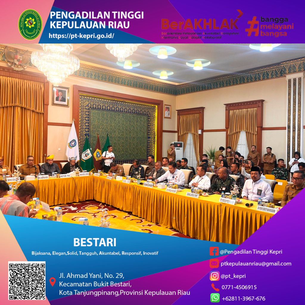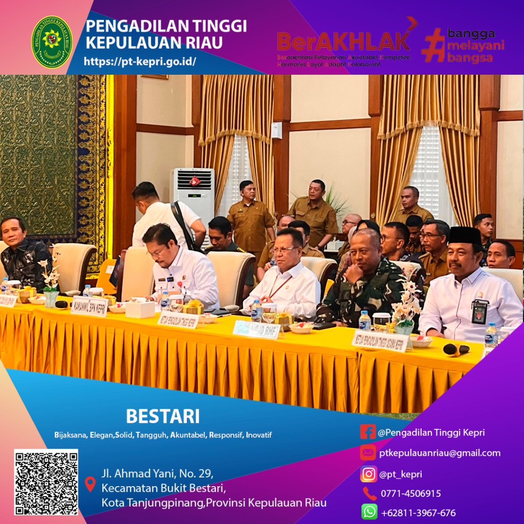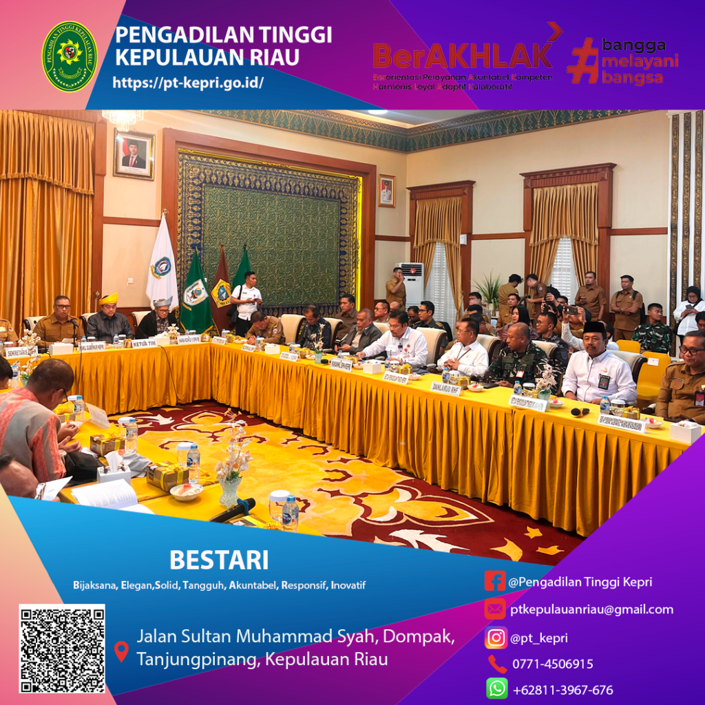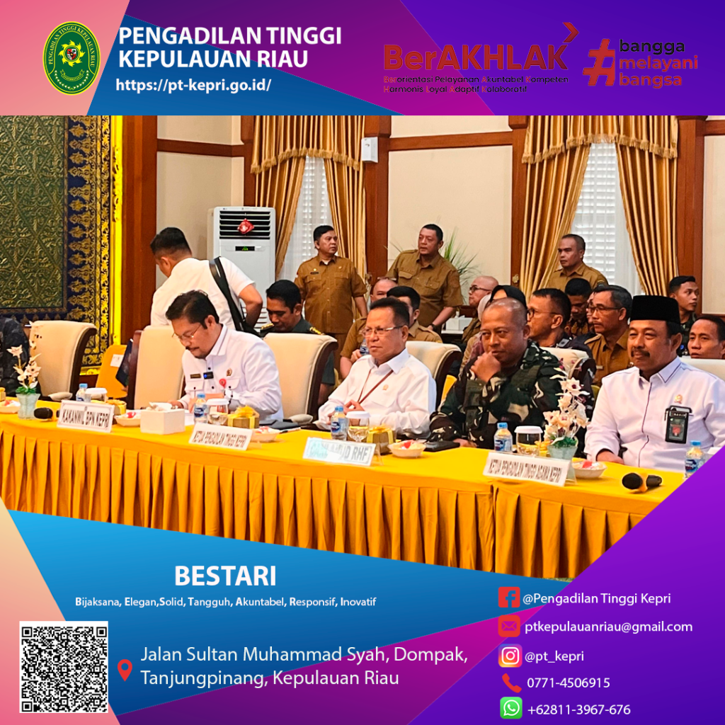 Komisi II Dewan Perwakilan Rakyat Republik Indonesia (DPR RI) melaksanakan Kunjungan Kerja Spesifik ke Provinsi Kepulauan Riau dalam rangka pengawasan pengelolaan Pos Lintas Batas Negara (PLBN) serta penerimaan negara bukan pajak (PNBP) sektor pertanahan. Kegiatan ini turut dihadiri oleh Yang Mulia Bapak Ketua Pengadilan Tinggi Kepulauan Riau bersama sejumlah pejabat daerah dan instansi terkait.