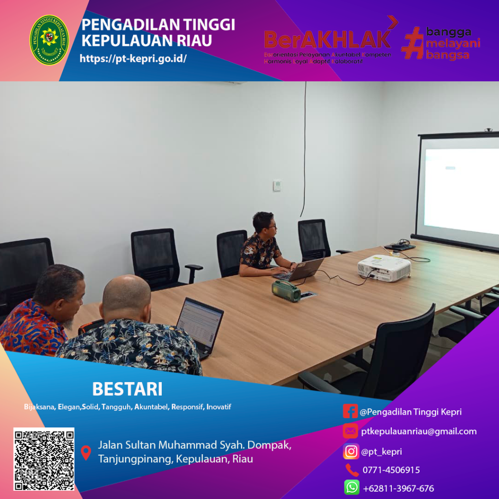 Pengadilan Tinggi Kepulauan Riau mengikuti Zoom sosialisasi Mengenai Fitur Standarisasi dan Evaluasi Pengadaan Menu Pengadaan Barang pada aplikasi e-Sadewa dari Ruang Kesekretariatan Lantai 2, yang dihadiri oleh Sekretaris, Kasubbag Keuangan dan Pelaporan serta Operator – Penata Layanan Operasional. Sosialisasi ini bertujuan meningkatkan pemahaman satuan kerja dalam penggunaan fitur e-Sadewa untuk mendukung proses pengadaan yang lebih tertib, efisien dan akuntabel