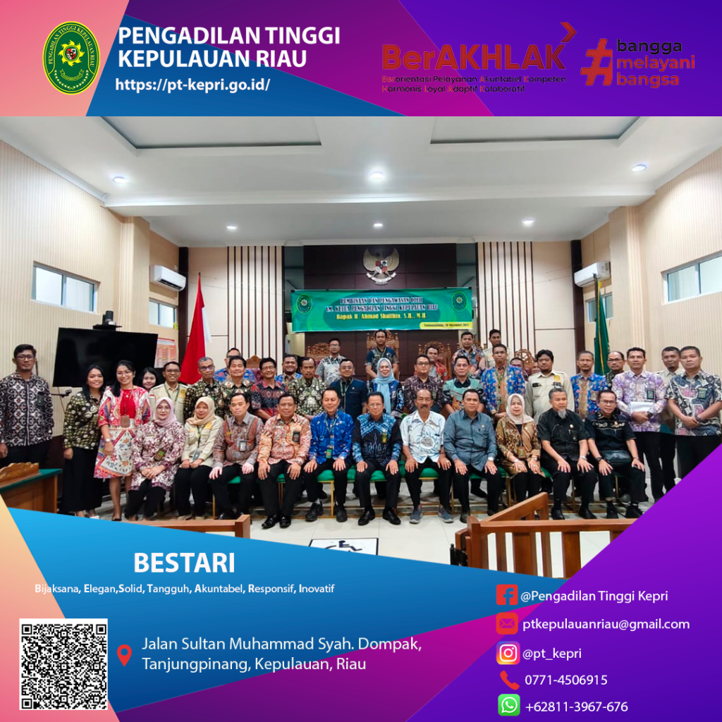Pembinaan dan Pengawasan ke Pengadilan Negeri Tanjungpinang dilaksanakan pada hari Kamis, 20 November 2025. Kegiatan ini merupakan bagian dari upaya berkelanjutan Pengadilan Tinggi Kepulauan Riau dalam memastikan kualitas pelayanan, tertib administrasi, serta peningkatan kinerja satuan kerja di bawahnya. Melalui kegiatan ini, diharapkan seluruh jajaran dapat terus menjaga profesionalitas dan memberikan pelayanan peradilan yang prima kepada masyarakat.