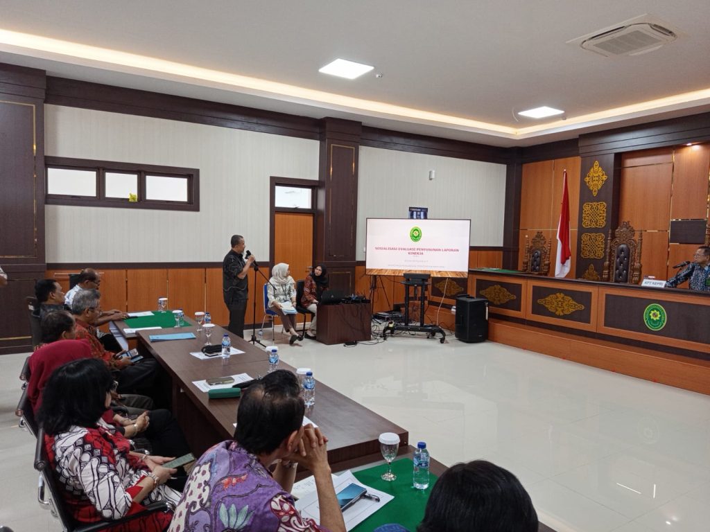 Sosialisasi Evaluasi Penyusunan Laporan Kinerja dilaksanakan pada Kamis, 22 Januari 2026, bertempat di Ruang Sidang Utama Pengadilan Tinggi Kepulauan Riau dan dipimpin oleh Sekretaris Pengadilan Tinggi Kepulauan Riau; kegiatan ini diikuti oleh pejabat struktural serta aparatur terkait sebagai upaya meningkatkan kualitas penyusunan laporan kinerja yang akurat, terukur, dan sesuai dengan prinsip akuntabilitas, guna mendukung transparansi serta evaluasi capaian kinerja satuan kerja secara berkelanjutan.