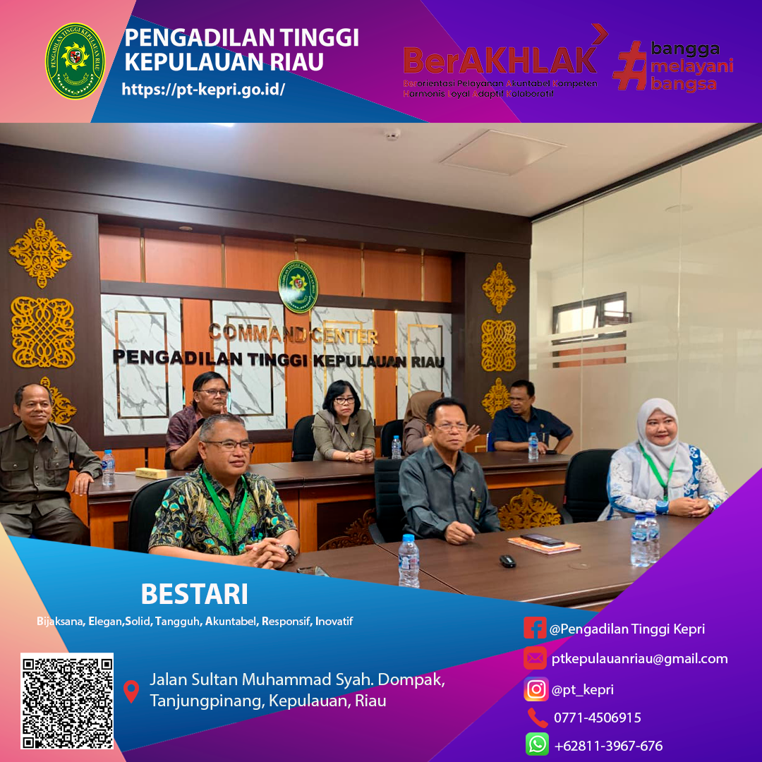 Kegiatan Zoom Penandatanganan Perjanjian Kerjasama (PKS) antara IKAHI dan Bank Syariah Indonesia serta Sosialisasi “Kepemilikan Griya/Hunian Hakim” dilaksanakan pada hari Rabu, 19 November 2025, bertempat di Ruang Command Center Pengadilan Tinggi Kepulauan Riau. Acara ini dihadiri oleh YM Ketua Pengadilan Tinggi Kepulauan Riau, YM Para Hakim Tinggi, serta perwakilan dari Bank Syariah Indonesia.